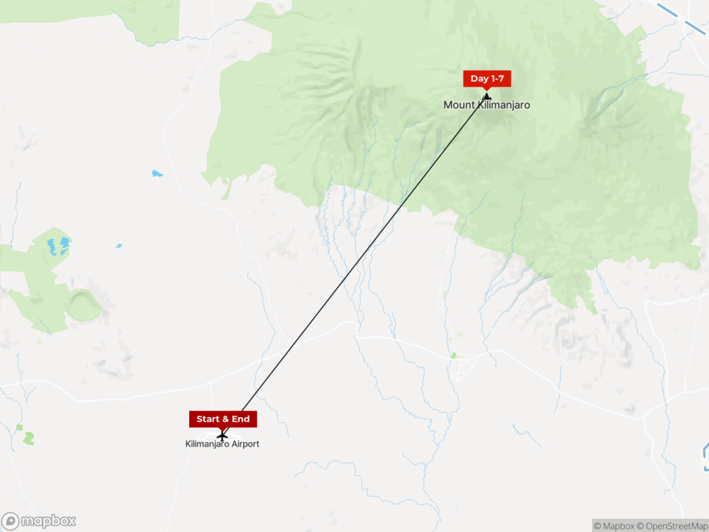 Your tour begins on (to be confirmed) in Kilimanjaro Airport, and runs over 7 days,